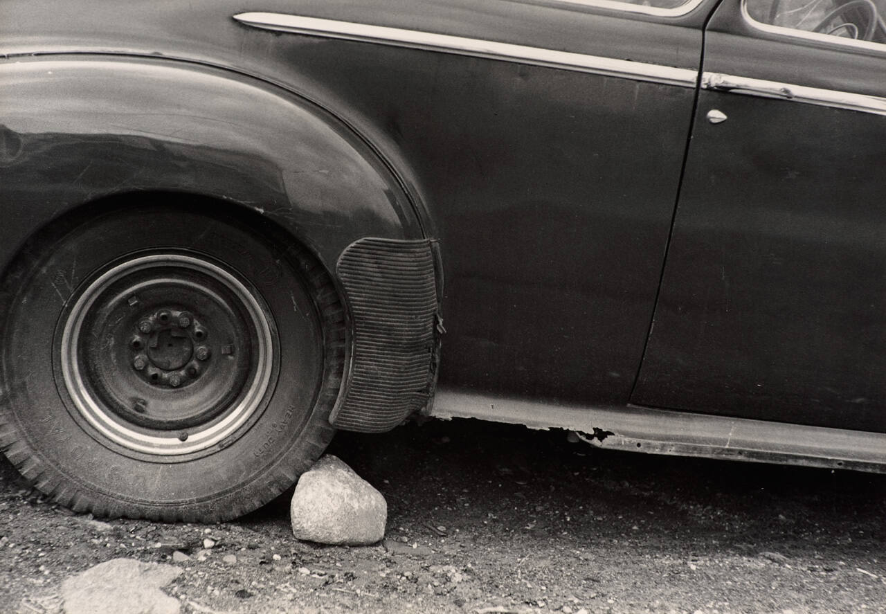 Untitled (Stone Holding Car Wheel)