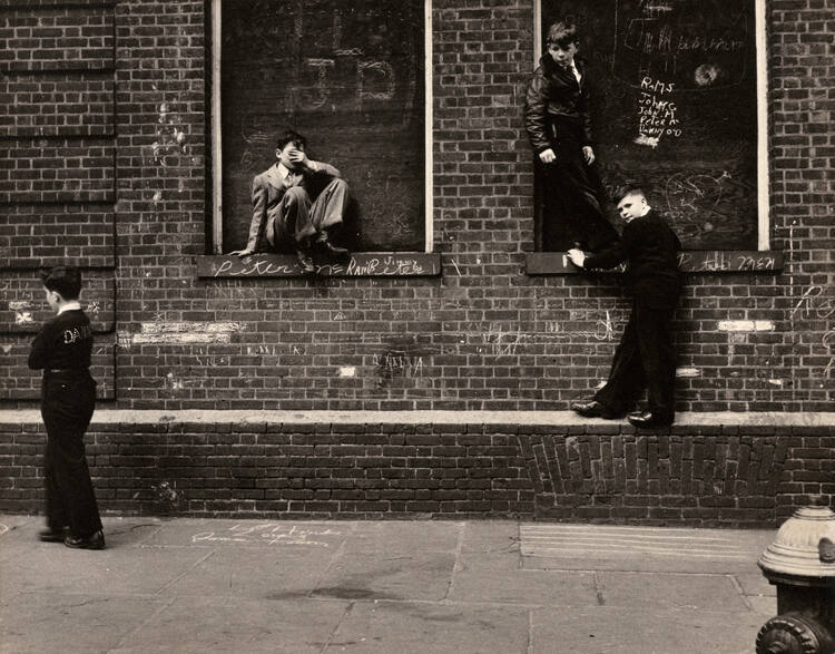 Untitled (Boys posing on sidewalk)