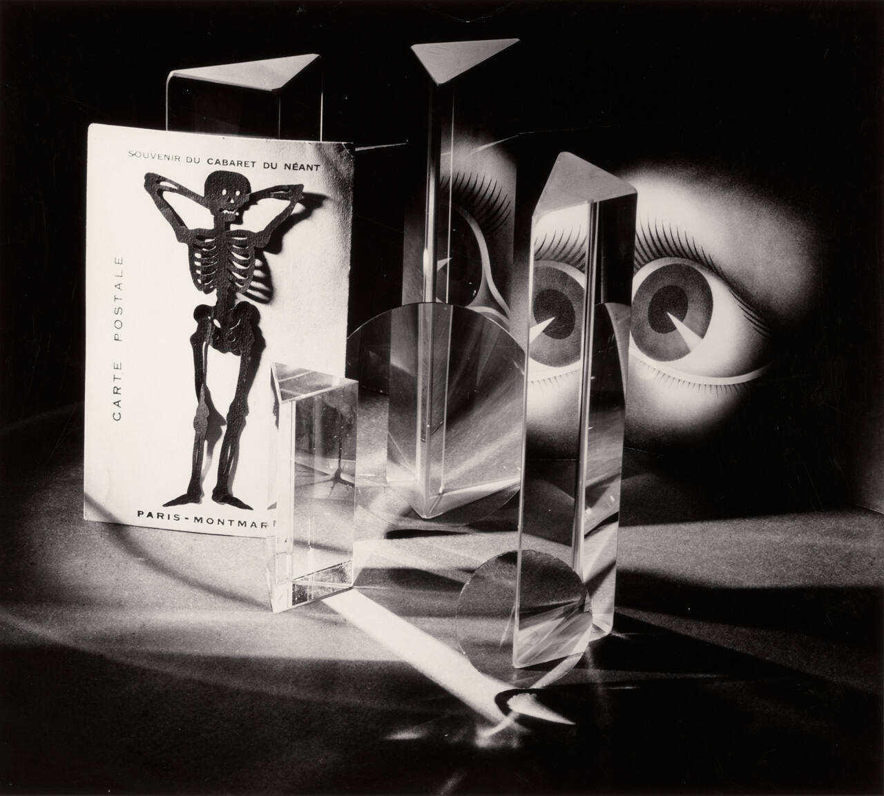 Roland Spedden, who owned a Detroit advertising agency, made highly inventive and experimental photographs for his own enjoyment. In this surreal image, Spedden arranged objects in a studio still life, using carefully controlled lighting and a glass prism to create a dynamic play between image, object, reflection and refraction.