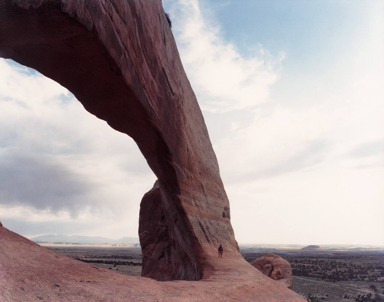 Steph beneath the Great Sandstone Arch, near Monticello, Utah, 6/21/82