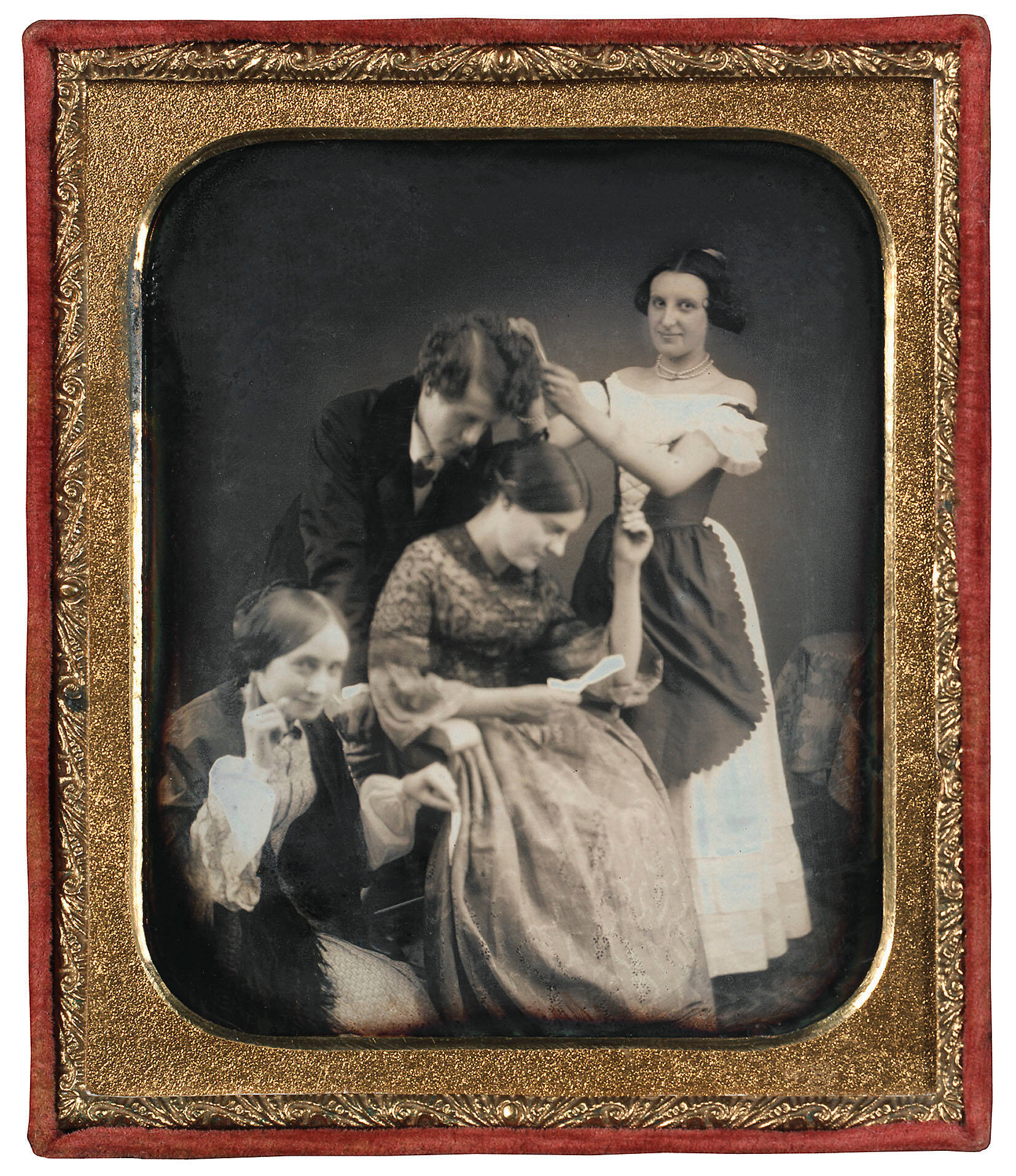 A small handwritten note identifying the sitters is housed behind the plate.