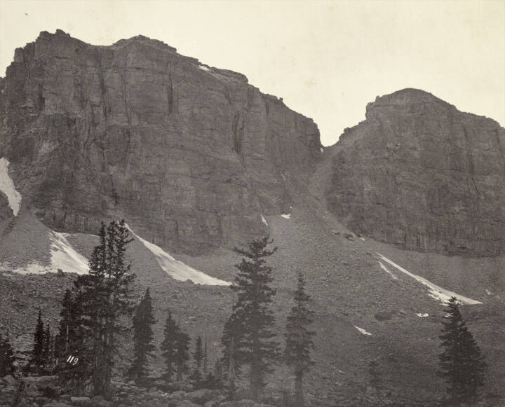 Some scholars have proposed that a group of 1869 Uinta Mountain photographs, including this one, were actually made by Andrew J. Russell.