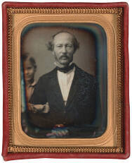 DescriptionImage of a man seated with hands in his lap; a child, partially cropped from view, wraps his arm around the man's arm. This ninth plate daguerreotype is housed in a brass mat inside of the back tray of leather covered case.Published ReferencesDolores A. Kilgo, "The Alternative Aesthetic: The Langenheim Brothers and the Introduction of the Calotype in America," America and the Daguerreotype (Iowa City: University of Iowa Press, 1991): 27-57; William Brey, "The Langenheims of Philadelphia," Stereo World 6:1 (March-April 1979): 4-20; Ellen NicKenzie Lawson, "Fathers of Modern Photography: The Brothers Langenheim," Pennsylvania Heritage 13:4 (Fall 1987): 16-23; Dolores Kilgo, "The Robyn Collection of Langenheim Calotypes," Gateway Heritage 6:2 (Fall 1985): 28-37; George S. Layne, "The Langenheims of Philadelphia," History of Photography 11:1 (January-March 1987): 39-52.