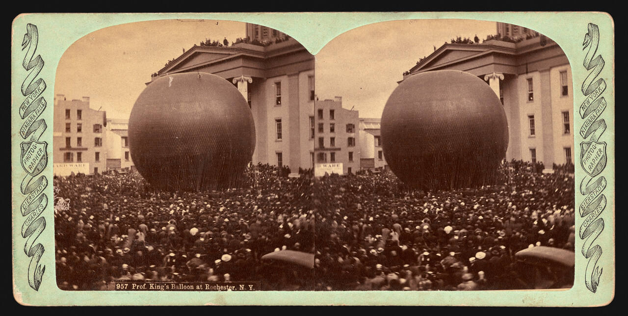 InscribedOn image recto, lower left, in white type: "Prof. King's Balloon at Rochester, N.Y."