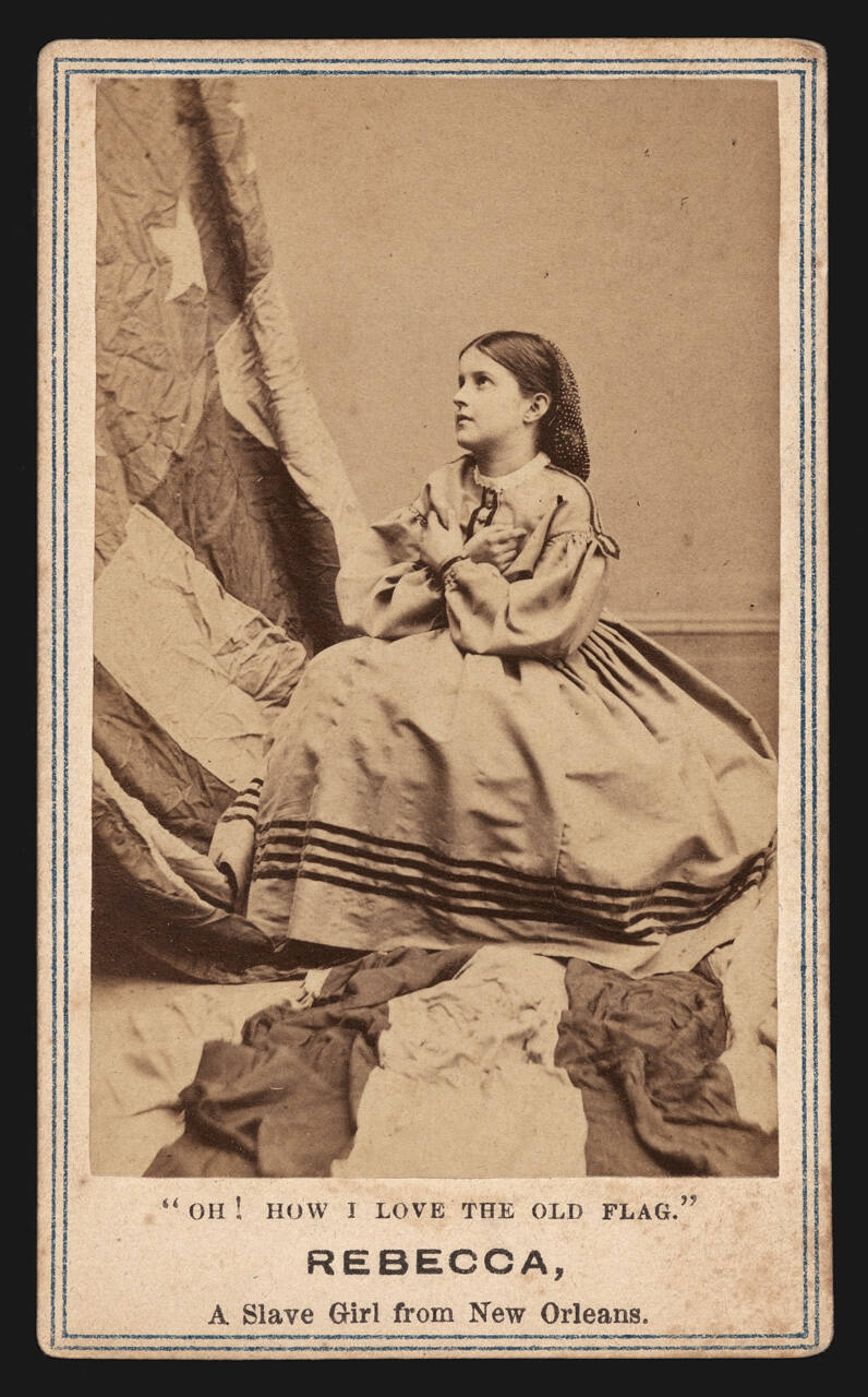 InscribedOn mount recto, bottom, in black type: ""OH! HOW I LOVE THE OLD FLAG."" / REBECCA, / A Slave Girl from New Orleans."