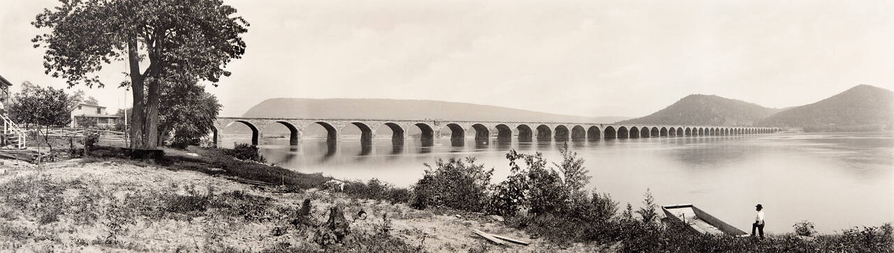 InscribedOn mount verso, lower left, in black pen: "THE LARGEST STONE BRIDGE IN THE WORLD. / LENGTH 3830 FEET, WIDTH 52 FEET, [FOUR TRACKS]. / 48 ARCHES. 440.000.000 POUNDS OF STONE."