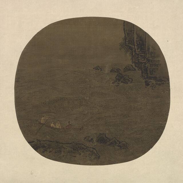 The painting illustrates a scene from Prose Poem to the Red Cliff by Su Shi (1037–1101), which describes visiting a historic battlefield. Li Song may have been inspired by the churning waves of West Lake near the Southern Song capital. He uses raging torrents and roaring surges to recall the sounds of war and to reflect the poet’s emotional reaction.