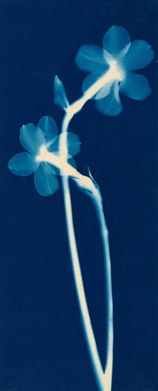 DescriptionBlue-hued negative image of two flowers blooming from a single divided stem.Exhibition HistoryRotation 25. The Nelson-Atkins Museum of Art, Kansas City, MO, October 19, 2018- March 17, 2019, no cat.