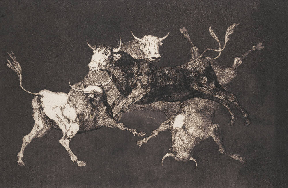 George L. McKenna, Prints, 1460-1995 (Kansas City, MO: Nelson-Atkins Museum of Art, 1996), 314, (repro.), as Additional plates for Los Proverbios: Al Toro y al Aire Darles Calle (Make way for bulls and wind).