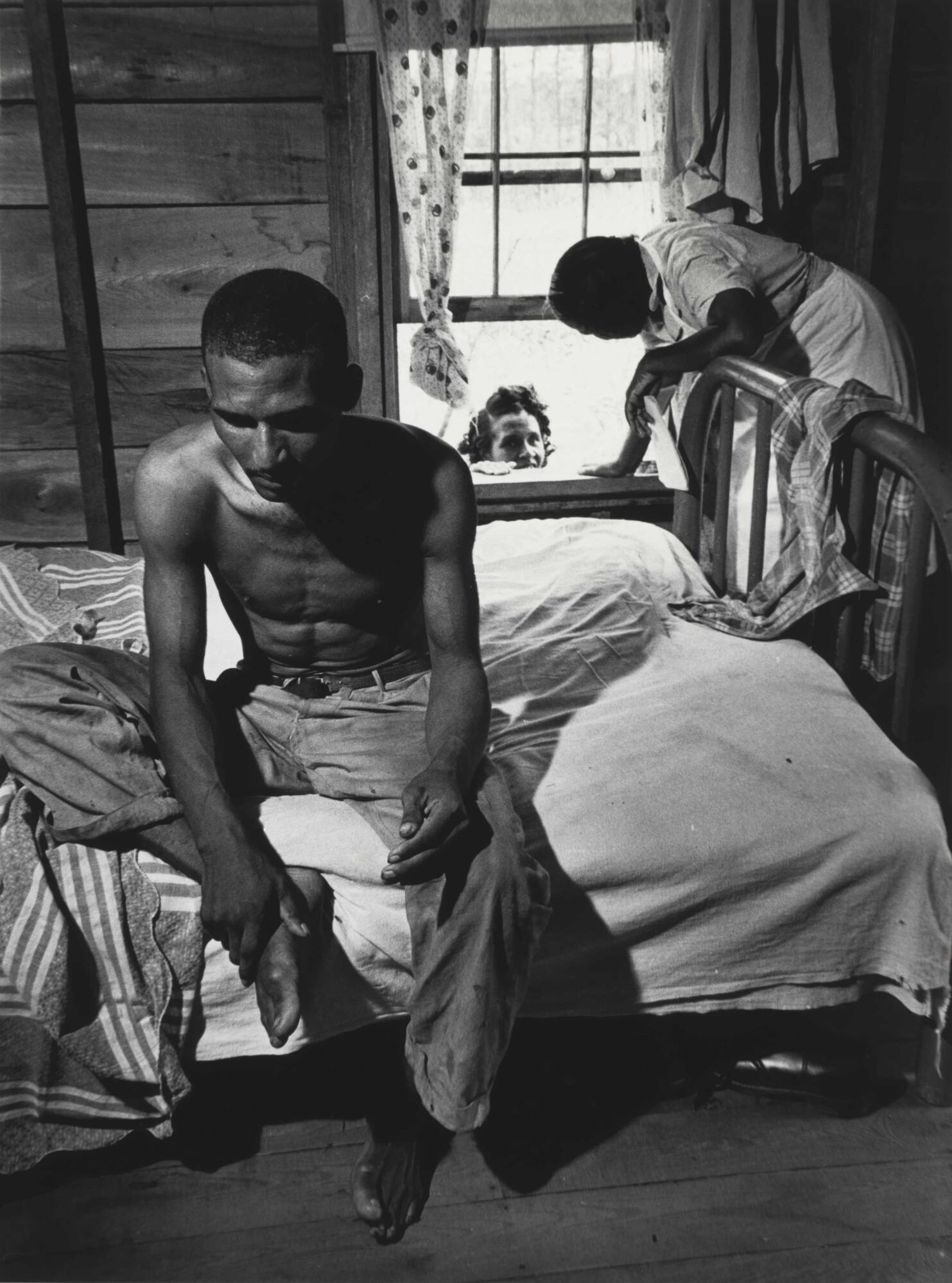 DescriptionVintage gelatin silver print of a black man ("Patient") sitting on a bed.Copyright© The Heirs of W. Eugene Smith