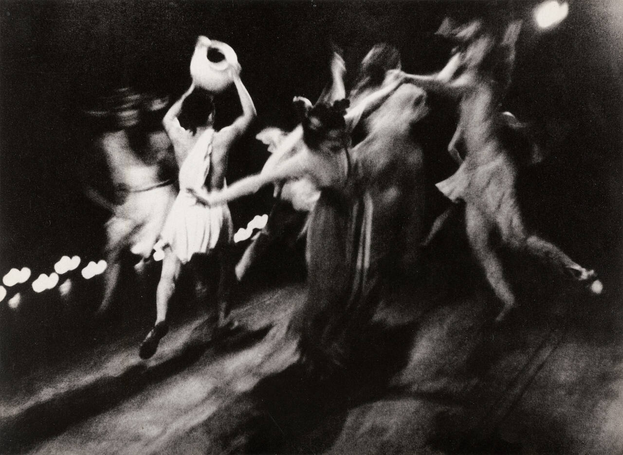 Alexey Brodovitch’s ballet photographs use blur, grain, and unconventional cropping to dynamic effect. The series of images was made in the mid-1930s and published as an influential book in 1945. Best known as the innovative art designer for Harper’s Bazaar from 1934 to 1958, Brodovitch had an enormous influence in the worlds of design, art, and photography. His career began in Paris in the 1920s, painting backdrops for Diaghilev’s Ballet Russes. He moved to Philadelphia in
