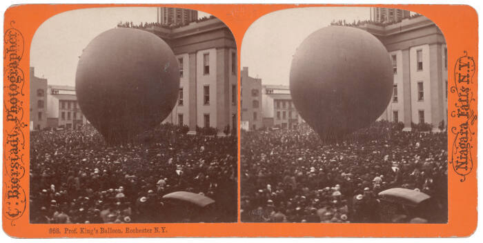 On mount recto, lower left, in black type: "958, Prof. King's Balloon, Rochester N.Y."