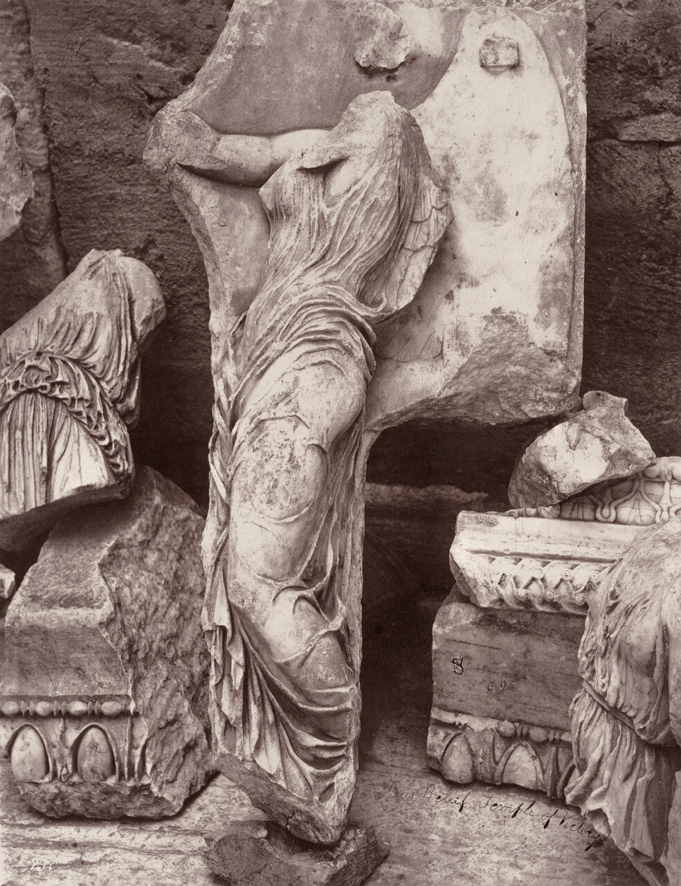 DescriptionPlate 24 from portfolio "The Acropolis of Athens" (1870). Image of the Figure of Victory; vintage.