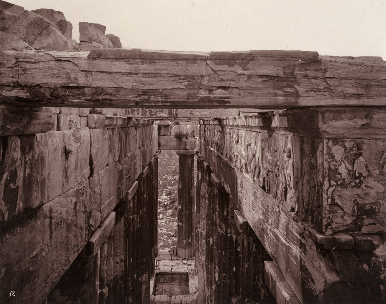 DescriptionPlate 12 from portfolio "The Acropolis of Athens" (1870). Image of the Parthenon, from above. Vintage