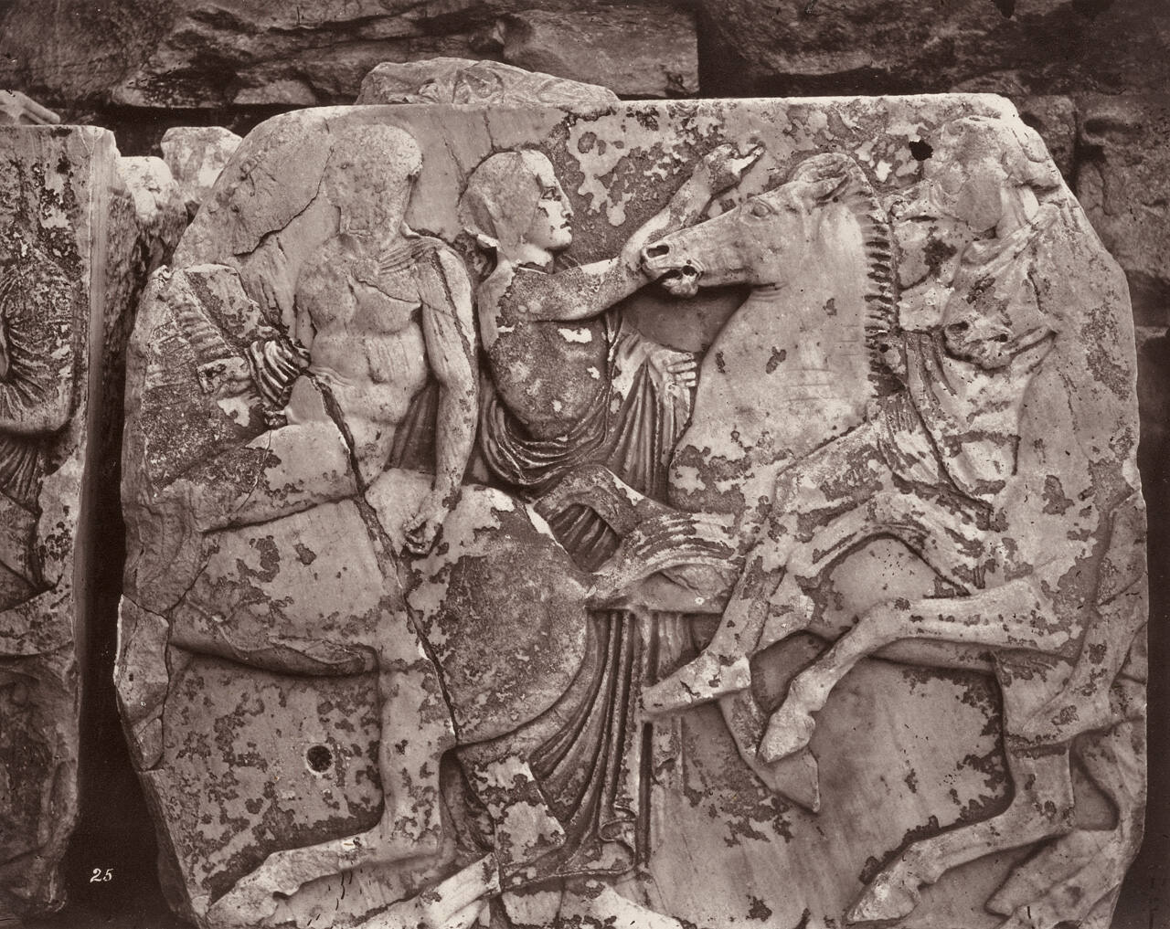 DescriptionPlate 25 from portfolio "The Acropolis of Athens" (1870). Image of a fragment of frieze from the Parthenon; vintage.