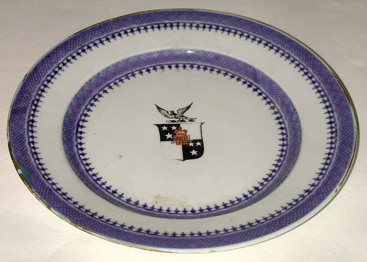 DescriptionHot water dish with blue and white borders, with Newman arms.