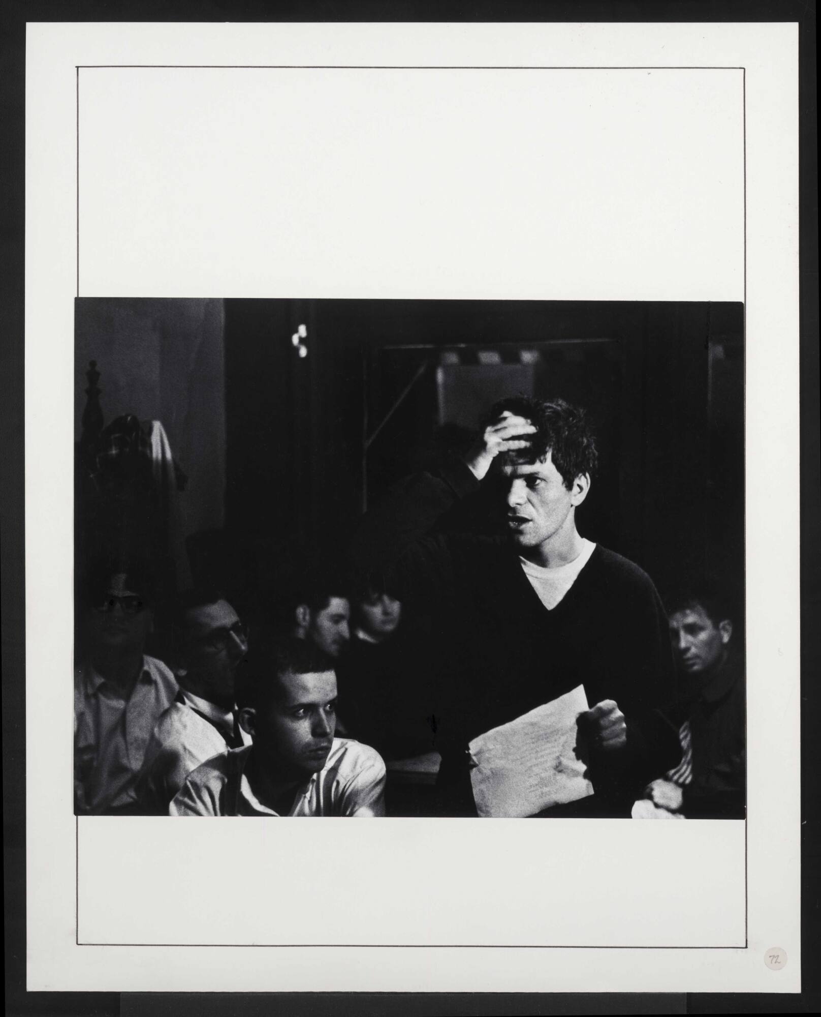InscribedOn mount verso, top, in pencil: "Gregory Corso (Jack Kerouac lower right) 7 Arts Coffee Gallery NYC ca.1957-60 ADWS master print 1962".