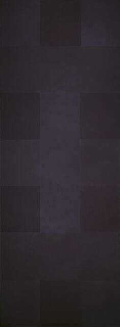 With its rectangular format composed of perfect squares, No. 10 is part of a series of paintings devoted to variations on colors of extremely close value. Reinhardt aimed to create an art of pure, monochromatic color and form, purged of emotion, representation and narrative. Here, he has used shades of black.