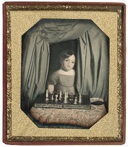 Painting of Young Girl with Chess Board (surreal still life)