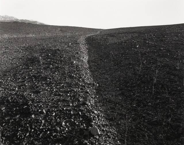 Ruwedel views the land as a vast historical archive, "inscribed with the evidence of many pasts." This fascination underscores The Ice Age, a sustained and prolific series begun the early 1990s. This body of work includes hundreds of photographs-including those presented here-made in the desert regions of the western United States. Ruwedel's explicitly contemporary vision-his use of repetition and his cool, seemingly detached style-emphasizes the impact of human intervention, rather than a more idealized notion of nature as untouched wilderness.
