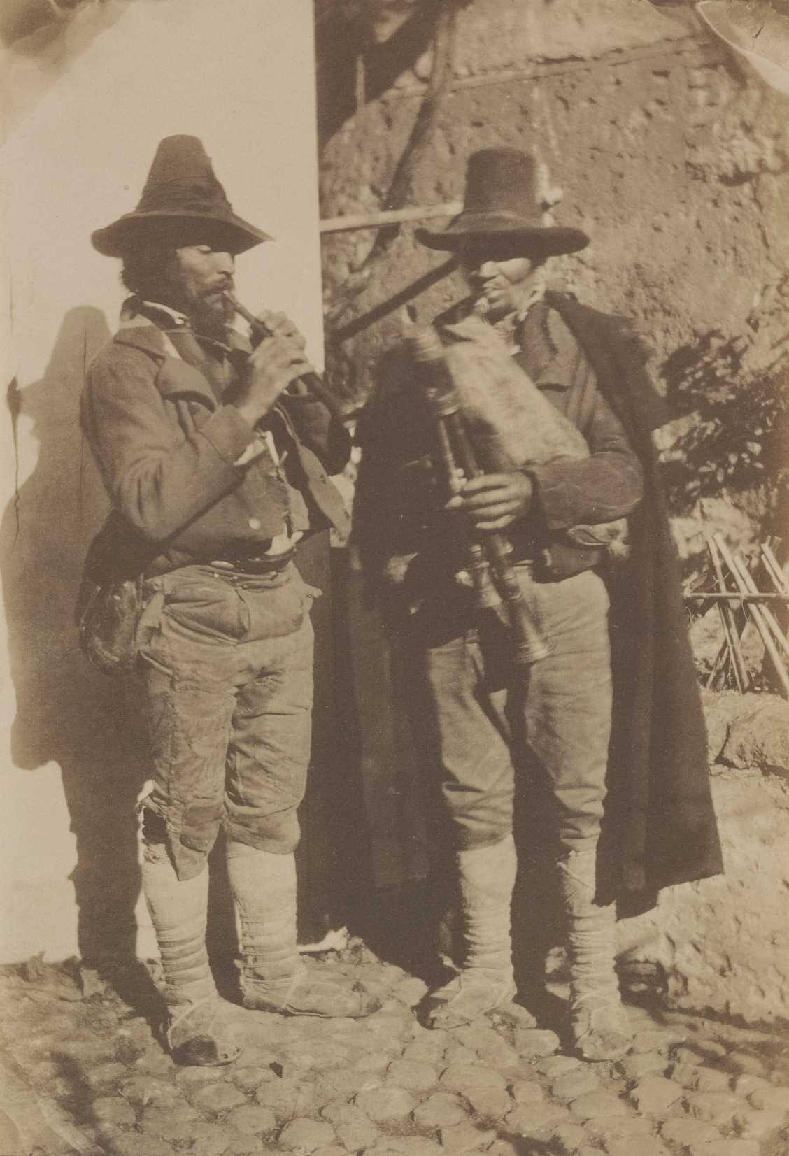 DescriptionImage of two men standing on a street corner, one playing a flute and one a sort of bagpipe.ProvenanceHans P. Kraus Jr., Inc., New York, NY;