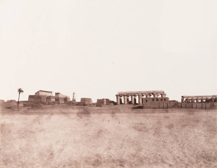 InscribedPrinted center top mount: "Égypte" Printed small just under photo on mount bottom let: "Imp. Phot.de H. de Fonteny et Cie f. à Paris en 1851, r. St. Nicholas d'Antin, 72" Printed bottom right of mount: "Publié par Goupil et Cie éditeurs, Paris, Londers, Berlin, New York" Printed center bottom on mount: "Louksor (Thèbes)/ Vue Générale des Ruines/ Pl. 29"
