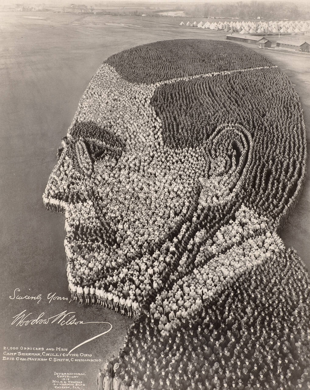 InscribedInscribed on image recto, in negative, lower left corner: "Sincerely Yours, / Woodrow Wilson [signature] / 21,000 OFFICERS AND MEN / CAMP SHERMAN, CHILLICOTHE OHIO / BRIG. GEN. MATHEW C. SMITH, COMMANDING."