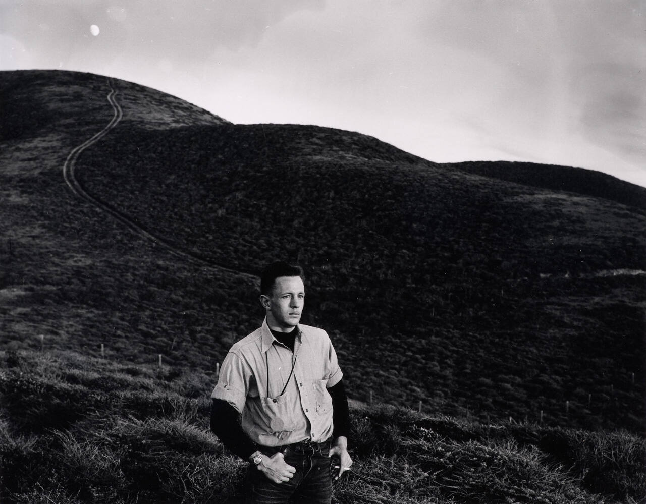 DescriptionImage of a man standing in a grassy landscape with a winding road leading up and over a hill. One of a sequence of 13 gelatin silver prints.