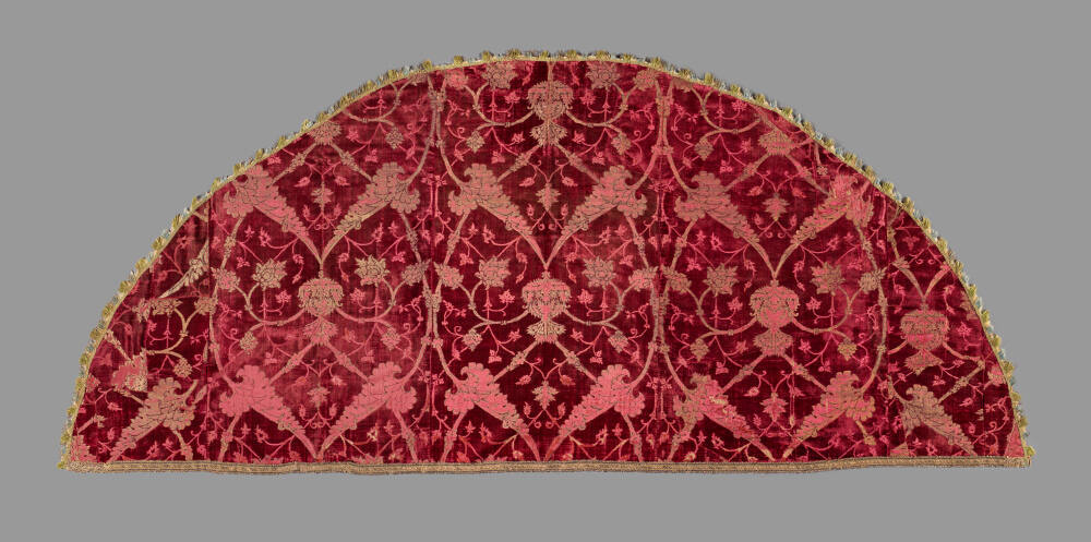DescriptionBrocaded velvet; red silk cut velvet on a satin ground brocaded with silver-gilt thread.Exhibition HistoryThreads of Gold: Brocades and Embroideries for the Church, Spencer Museum of Art, University of Kansas, Lawrence, KS, July 2-September 1, 1985, no. 6.