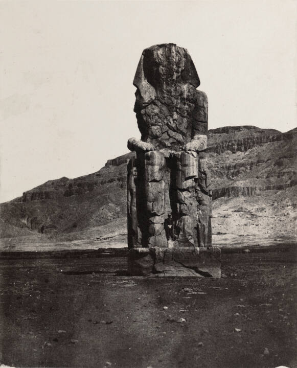 DescriptionPhoto of a very large statue of Amenopht. There are hills in the distance behind her.Exhibition HistoryExploring Egypt: 19th Century Expeditionary Photography. Nelson-Atkins Museum of Art, Kansas City, MO, March 6 - July 18, 2010, no cat.