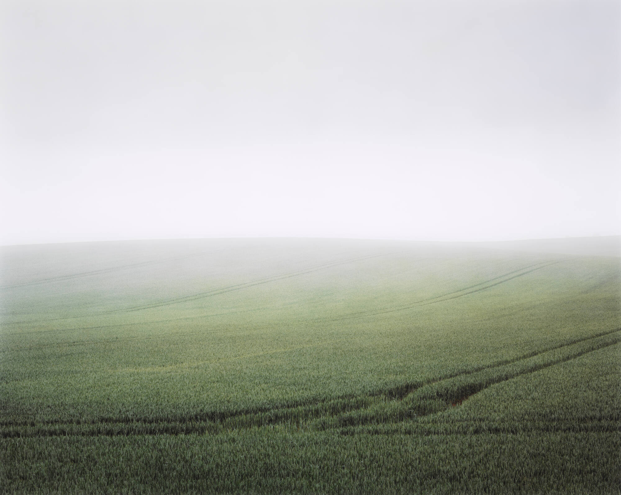 DescriptionColor landscape depicts an expansive green field; tractor furrows cut through the foreground as field recedes into a misty distance.Exhibition HistoryThe Course of History. Foley Gallery, New York, NY, 2005.