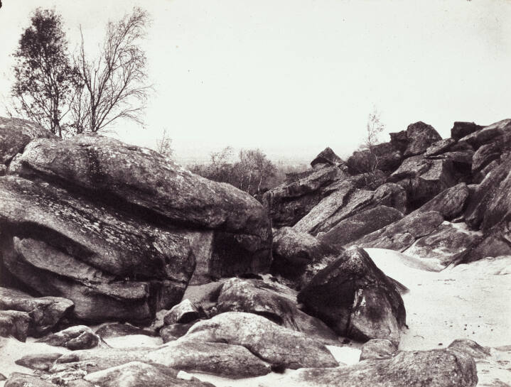 DescriptionImage of very rocky terrain with sand spilling out between large boulders; small trees in background at left.ProvenanceJohn Chandler Bancroft, Middletown, Rhode Island; Gustave J. S. White Co., Newport, Rhode Island, 1989; a New England antiques dealer; private collection; Sotheby's New York, "An Important Collection of Photographs by Eugene and Adalbert Cuvelier," lot 14, 13 April 2007.