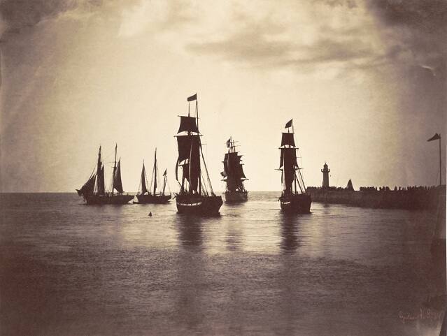 DescriptionImage of a seascape; five ships with sails are on the water; land is visible to the right with a lighthouse.Gallery LabelOne of the most influential photographers of the 19th century, Gustave Le Gray was a fervent proponent of the medium's artistic potential. This striking scene, taken at Normandy, near Le Havre, demonstrates Le Gray's masterful ability to fuse reality and romanticism in a single picture. Le Gray was renowned for these marine studies, which received both popular and critical acclaim and were among the most widely distributed photographs among art audiences in their day.