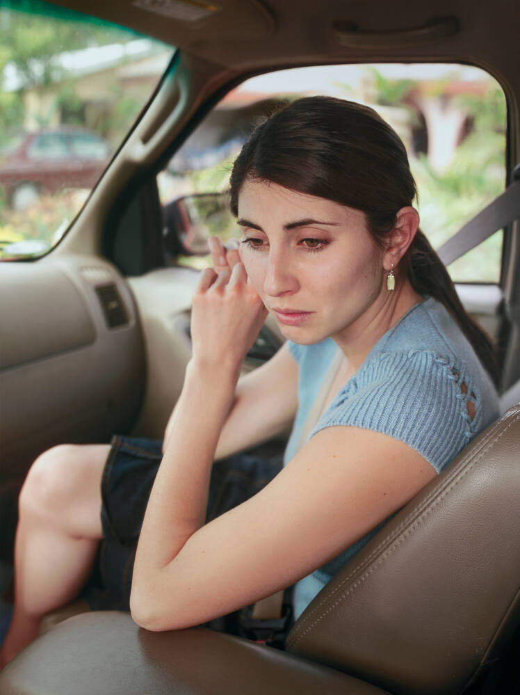 DescriptionImage of a woman seated in the front seat of a car, looking pensive, adjusting her right earring with her left hand.Gallery LabelThis close-up portrait of a young woman pulls the viewer into a confined, personal space. The woman’s expression remains mysterious and difficult to read as she adjusts her earring in the front seat of a car. Though the portrait may appear spontaneous, Ben Gest actually composed the image by stitching together many digital captures. This process allows Gest to create nuanced portraits than convey tension between intimacy and distance in psychologically-charged, everyday settings.
