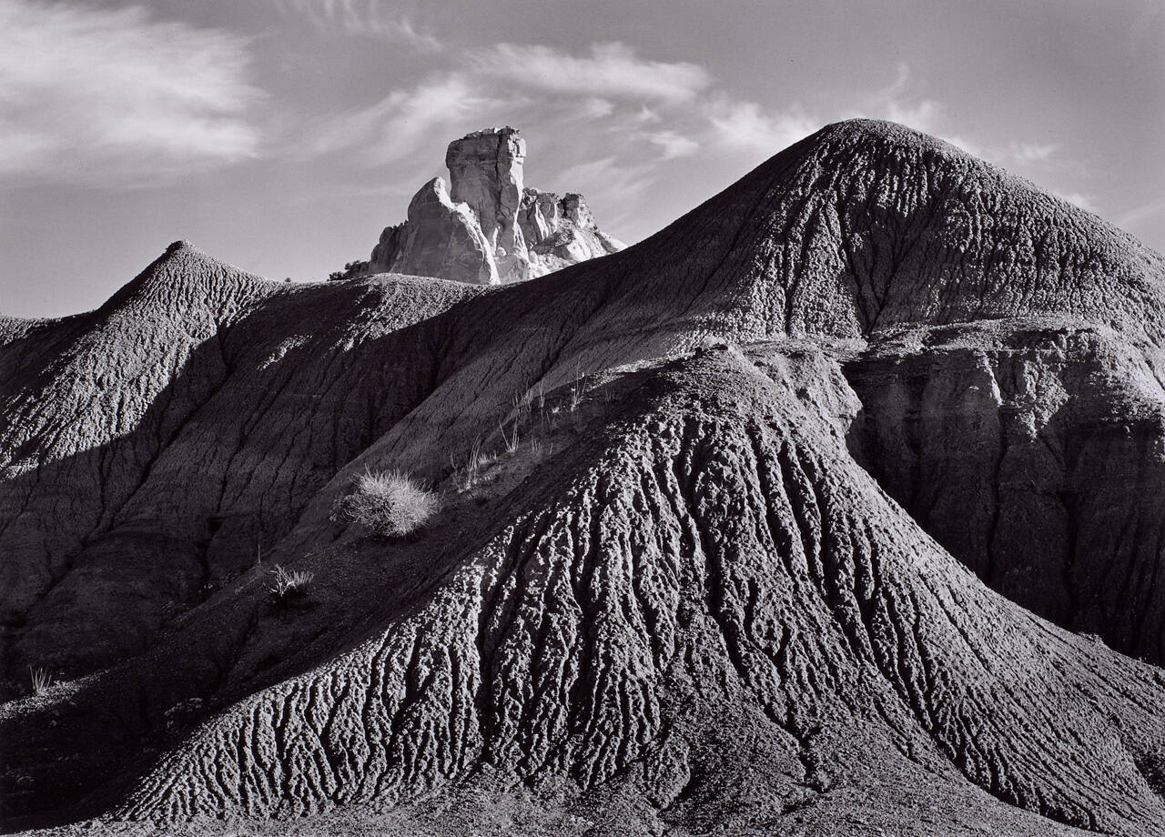 Ansel Adams is renowned for his meticulous technique and his love of the majestic Western American landscape. This photograph of the Ghost Ranch Hills, taken on a visit to Georgia O’Keeffe’s ranch in New Mexico, emphasizes the view and transient effects of light and dark. Printed to ensure maximum dramatic effect, this work demonstrates that interpretation was a natural part of Adams’ “straight photography” technique. Evoking his early training as a classical pianist, Adams famously said, “The negative is the score and the print is the performance.”