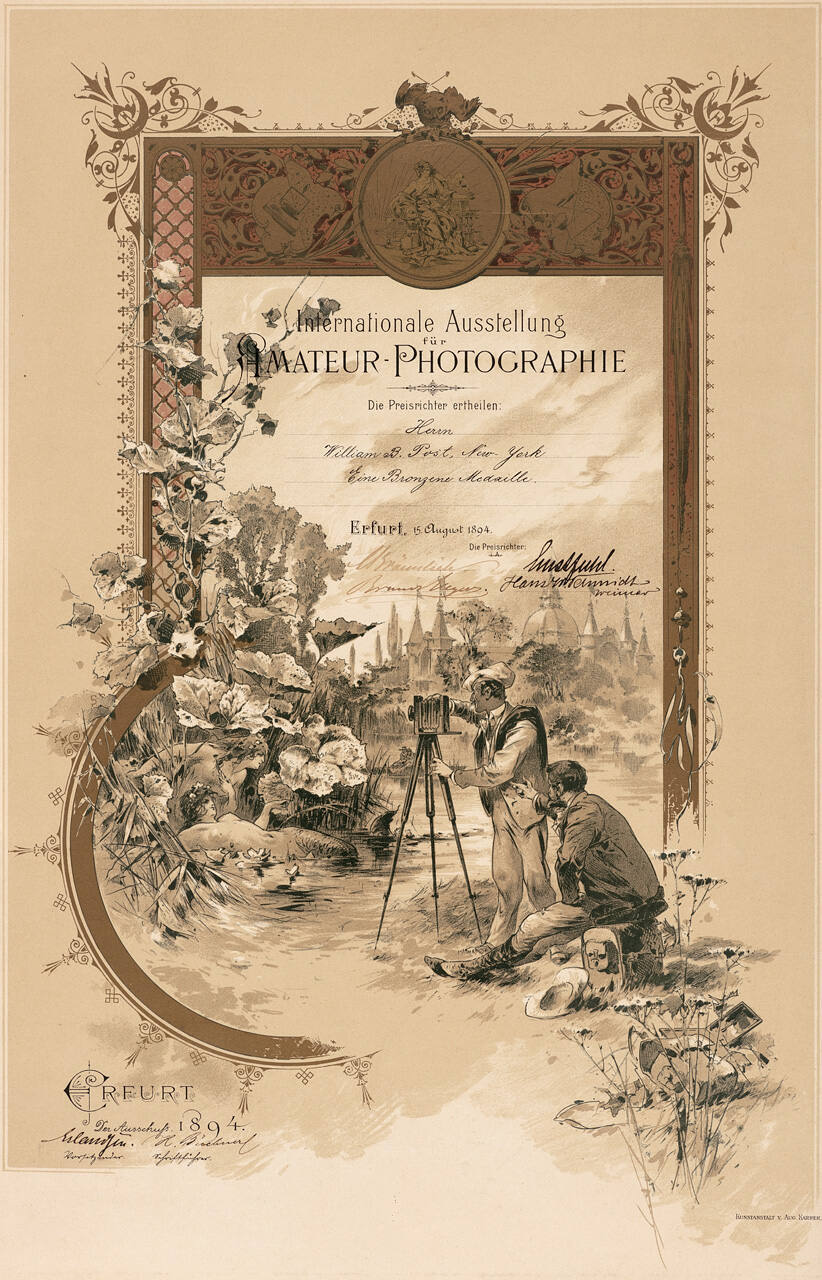Award from the Internationale Ausstellung für Amateur-Photographie for William B. Post