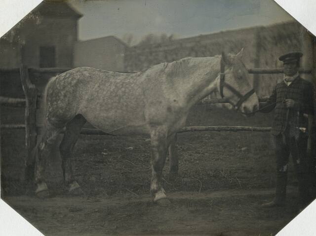DescriptionImage of a horse standing towards a man who holds its reins. The man is wearing a plaid jacket and a cap.Exhibition HistoryRotation 3. The Nelson-Atkins Museum of Art, Kansas City, MO, March 20 – August 18, 2008, no cat.
