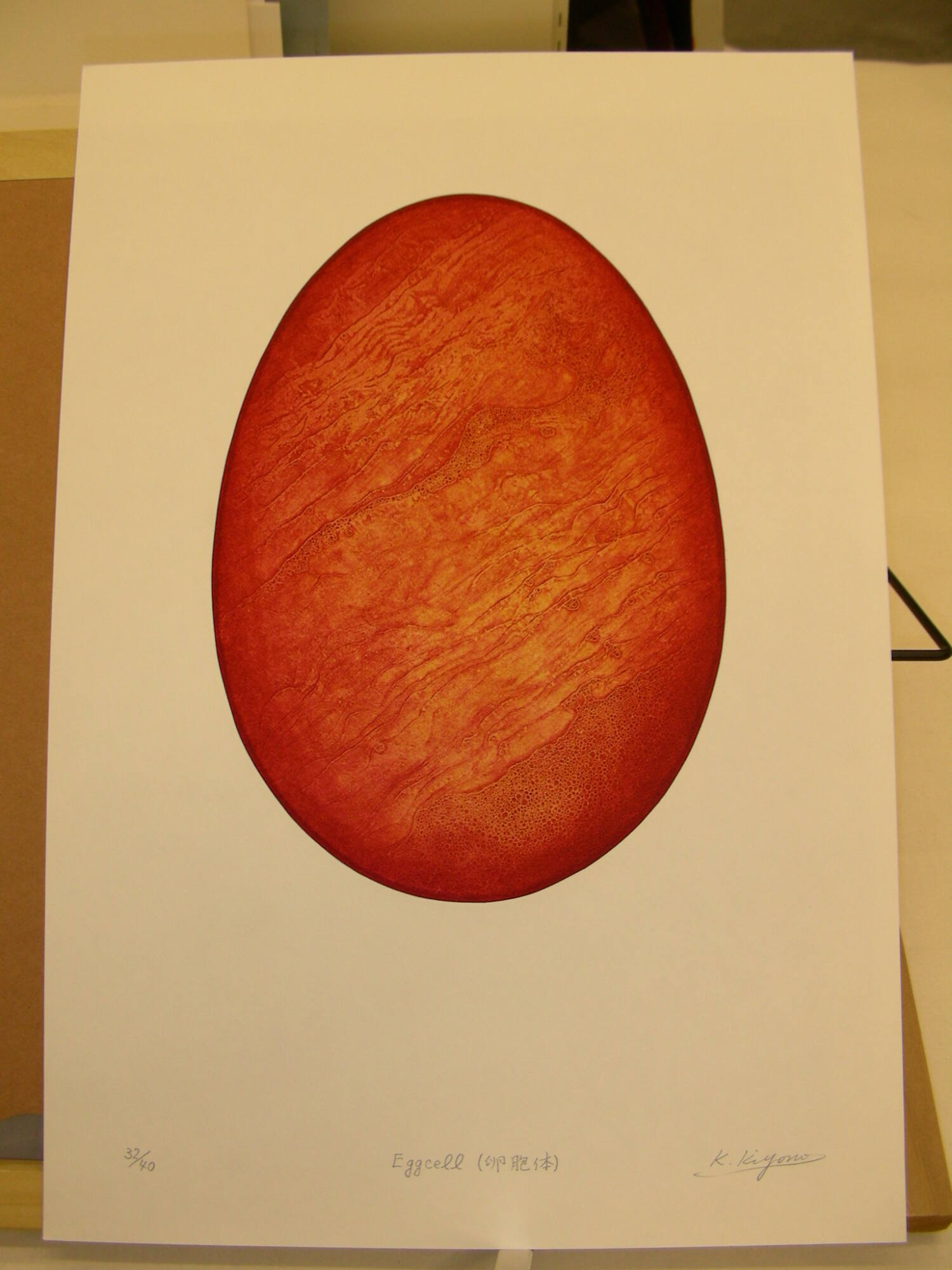 DescriptionIn center is large red with orange egg shape. From a portfolio of 35 works by 33 artists from the book "Printmaking at the Edge," published in London, England.Copyright© Koichi Kiyono