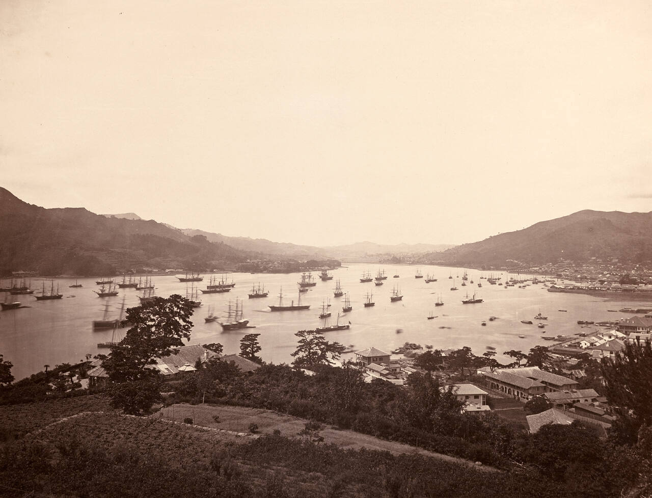 An early photographer of Yosemite and California, Charles Weed responded to the burgeoning market for international photographs by traveling and photographing in Asia. He made his first trip to China in 1860 and established a studio in Hong Kong. For the next few years, Weed traveled between California, Hawaii, and Asia, and produced views of China and Japan. In this image, Weed pictures the Japanese city of Nagasaki, a free port first opened to foreign trade in 1859.