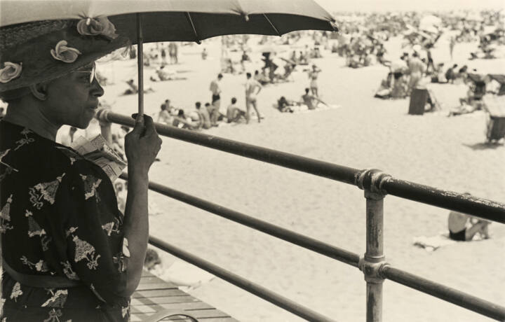DescriptionImage of a woman with umbrella standing a far right looking over a railing at bathers.Exhibition HistoryThe Photographs of Homer Page: The Guggenheim Year, 1949-1950. The Nelson-Atkins Museum of Art, Kansas City, MO, February 14 - June 7, 2009.