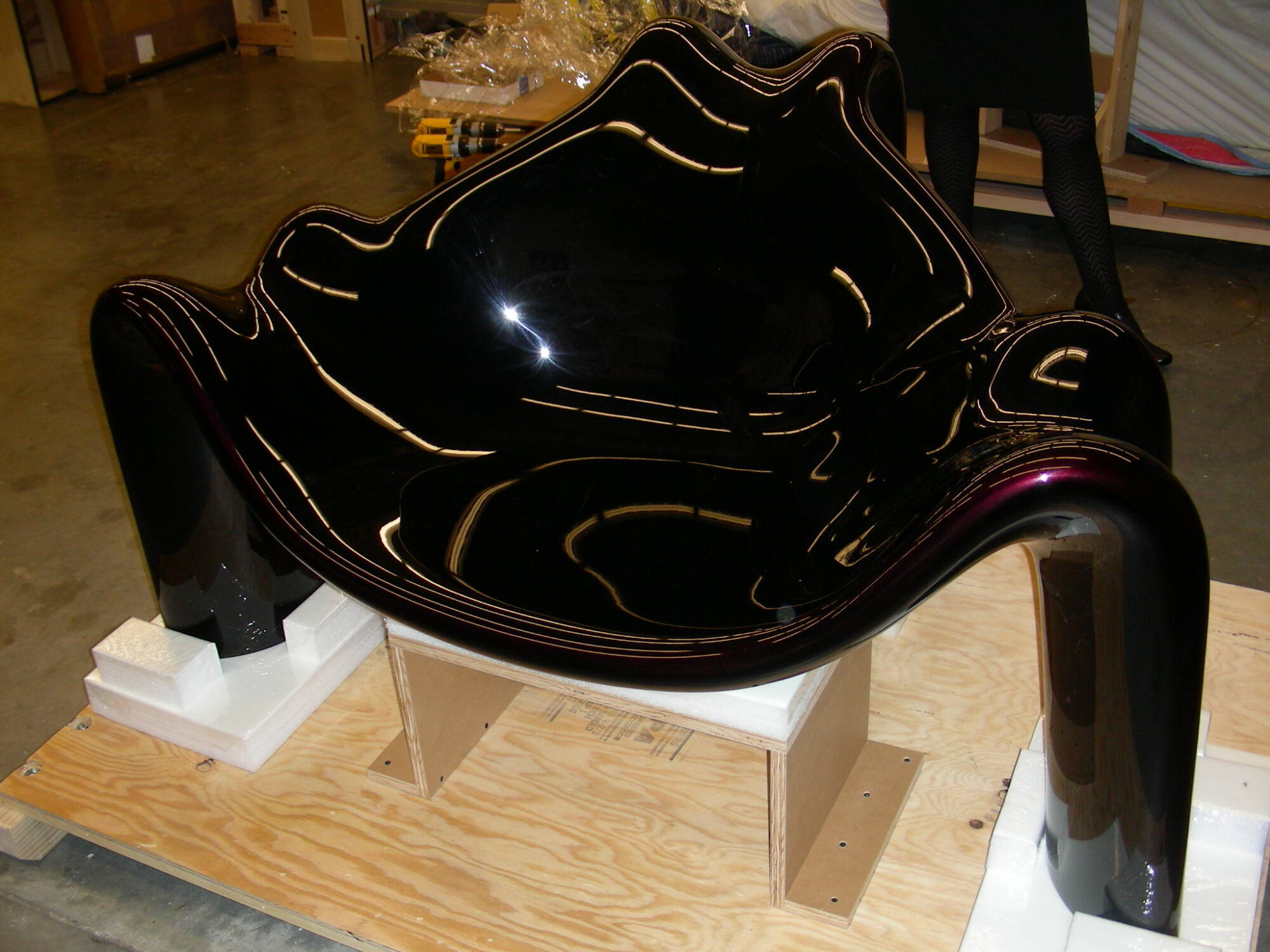 DescriptionThree-legged dark burgundy or plum-colored fiberglass chair with metal flaked paint. The whole chair is of one piece with the three legs integral to the seat and back.Copyright© Barry Friedman Ltd., New York. License obtained from the artist for all internal museum reproductions.