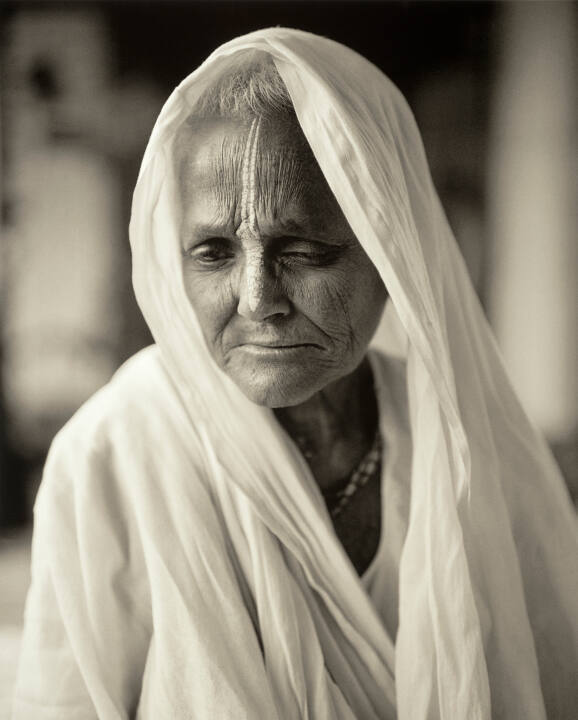 DescriptionPortrait of veiled older woman, looking downwards.Copyright© Fazal Sheikh