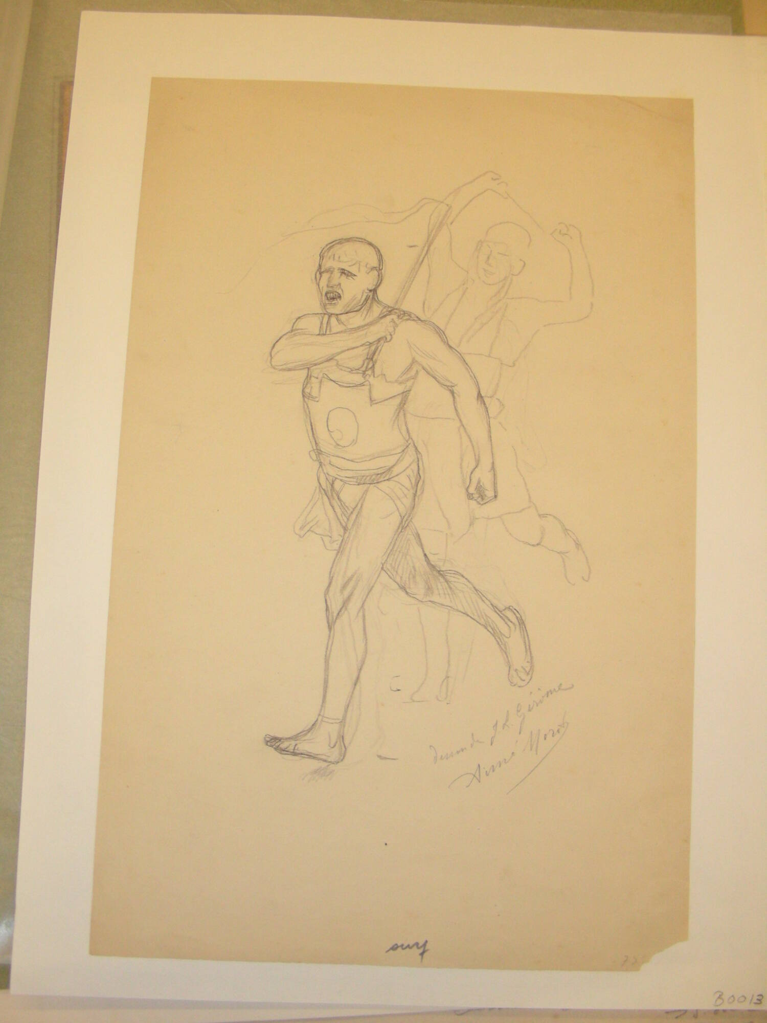 DescriptionA warrior brandishing a stick over his left shoulder, another warrior behind.Exhibition HistoryN/A