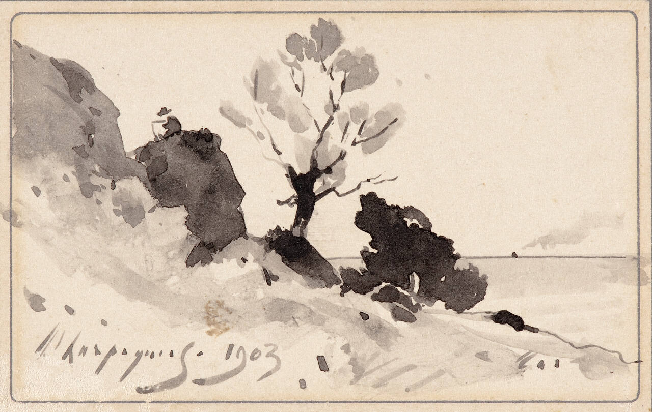 DescriptionLandscape with trees by the sea.Exhibition History[No known exhibitions at this time]
