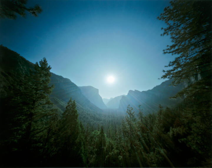 In his Local Stories series, Jerry Spagnoli views the details of daily life in a much larger context, focusing on the universal constant of the daily path of the sun overhead. To make this body of work, Spagnoli put an extreme wide-angle lens on a large 8x10-inch camera. The sun is located in the center of every image, becoming the vortex of every view. Spagnoli uses photography to do what we cannot—to look directly at the sun and to experience it as part of our field of view. The sun becomes something to be seen as well as the ultimate source of light.