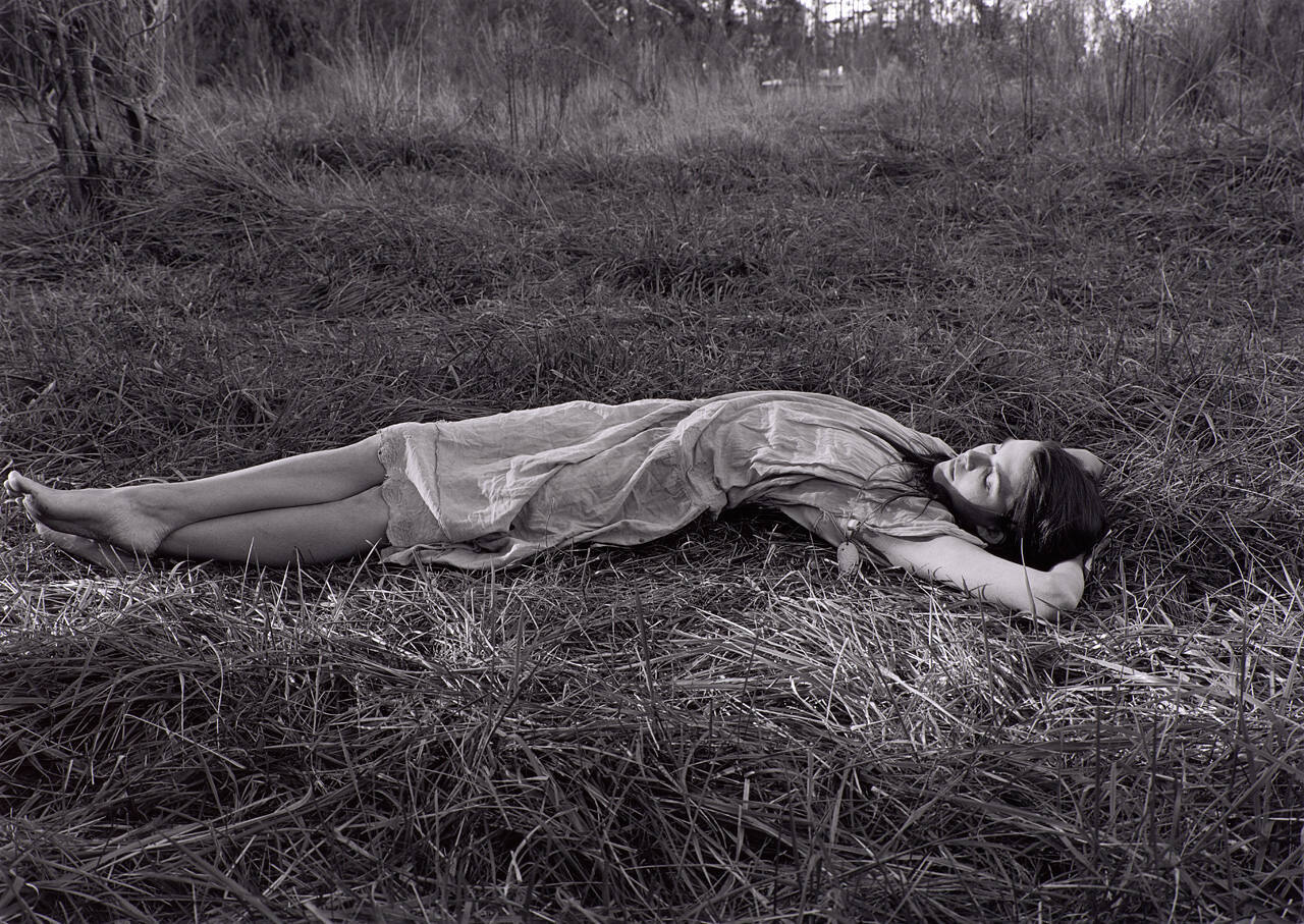 In this image, a young girl lies in the grass, eyes closed and arms crossed behind her head. Her posture suggests a mood of dreamy introspection. For Mark Steinmetz, showing something of people’s inner lives is a compelling aspect of portraiture. The photographer retains a certain personal distance however, which he feels is also essential. The resulting portrait, as seen in this image, is often both tender and respectful.
