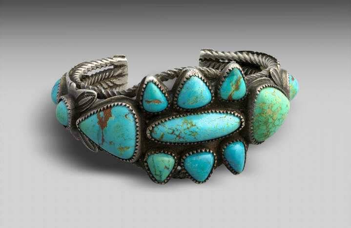 DescriptionSilver bracelet set with multiple turquoise and oval shaped turquoise stones.Published ReferencesTorrence, Gaylord, ed. Continuum: North American Native Art at the Nelson-Atkins Museum of Art. Kansas City: Nelson-Atkins Museum of Art.
