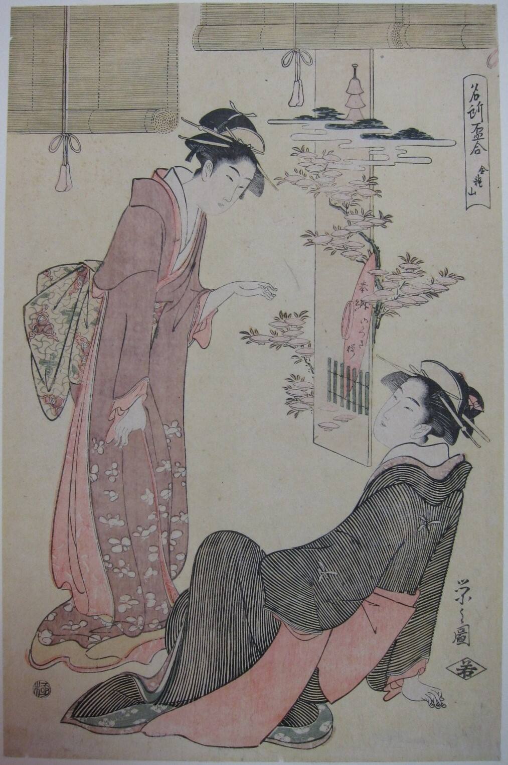 Hosoda Eishi is known for his tall, slender female figures, the images of geisha (courtesans) who worked in the pleasure districts of Japan’s cities.