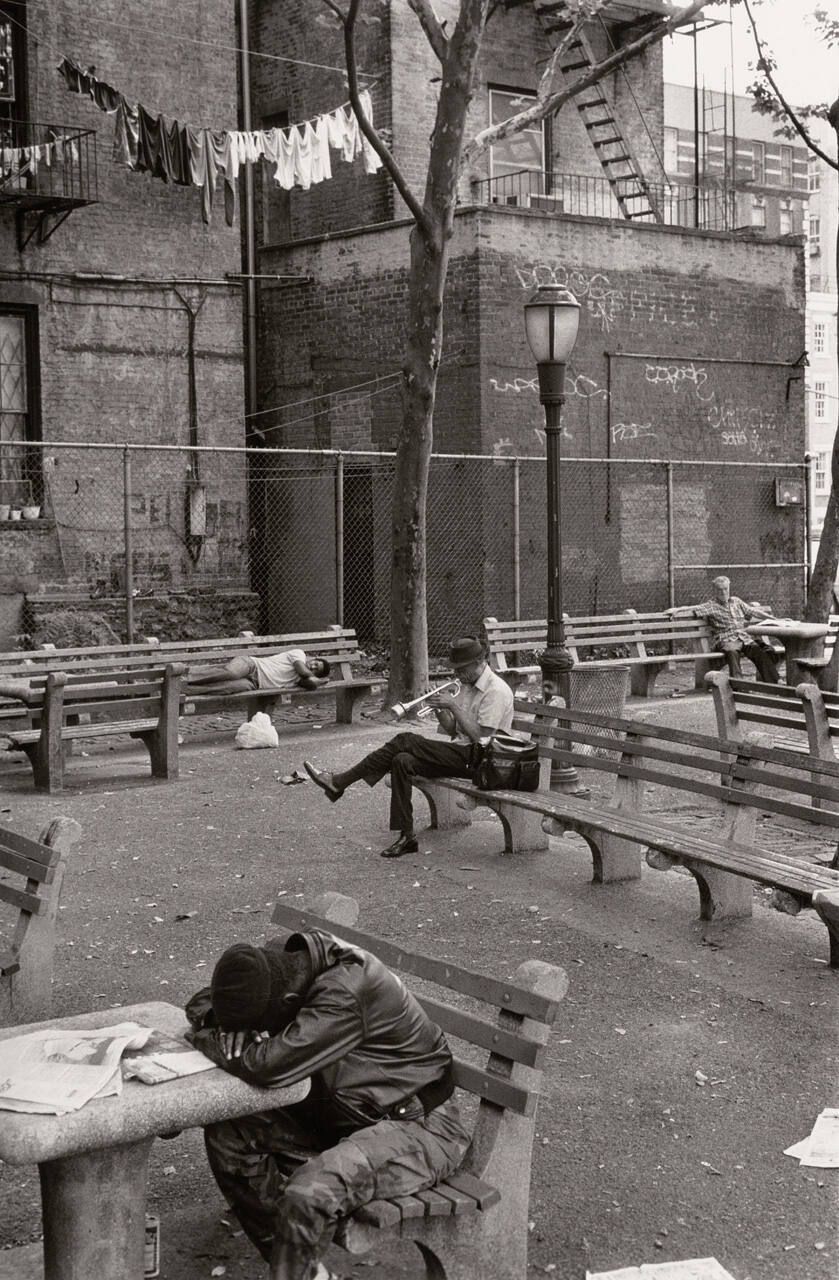 Man playing trumpet in park