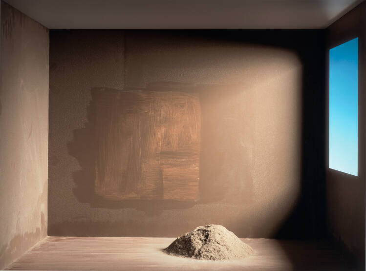 SignedSignature label on frame backing board, upper left, white label with black type and black pen: "Ross Sawyers / Untitled / 2009 / Archival Inkjet Print / 35"h x 47 1/4" w / Edition 2 of 10 / [signature] 2/10"
